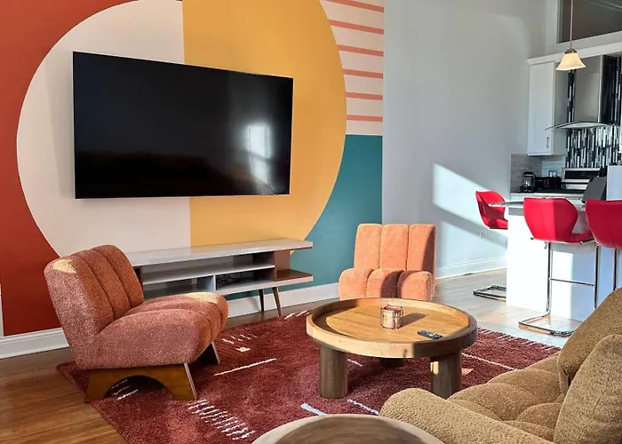 The 2-room Chic 2 Bedroom 1 Parking Sleeps 6 provides easy access to various city attractions, such as Stan Mikita Statue by Julie Rotblatt-Amrany, situated 450 metres away. At this spacious 106 m² property, Wi-Fi and a car park are also provided.
